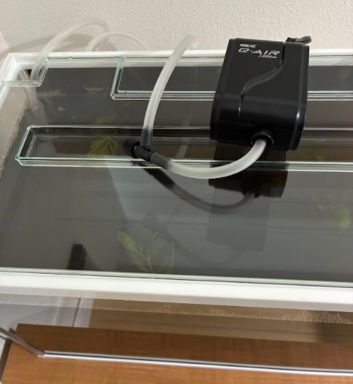 見ためでは、ここまではいい感じに来てますね。ソイルを入れる時に、仮設置した後に外したポンプをもう一度取り付けます。ソイルの底辺に当たらない程度に高さを調整しました。