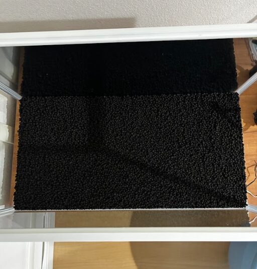最後にマツモを投入です。Amazonで数百円で購入したもので、水道水で洗ってから新鮮そうな部分だけを残して、あとは廃棄です。新鮮そうなところがあれば、また伸びていくそうですね。エビがマツモに取りついて、ツマツマするのを楽しみにしましょう。