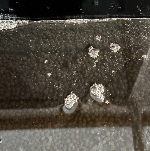 水槽にバケツから水を灌ぐときは、手で水を受けながら入れます。そうしないとソイルが水槽の中で暴れてしまうので、注意しながら入れていきます。今回使ったソイルは洗わなくてもいいタイプのものでしたが、水は濁ります。この辺りは仕方ありませんね。